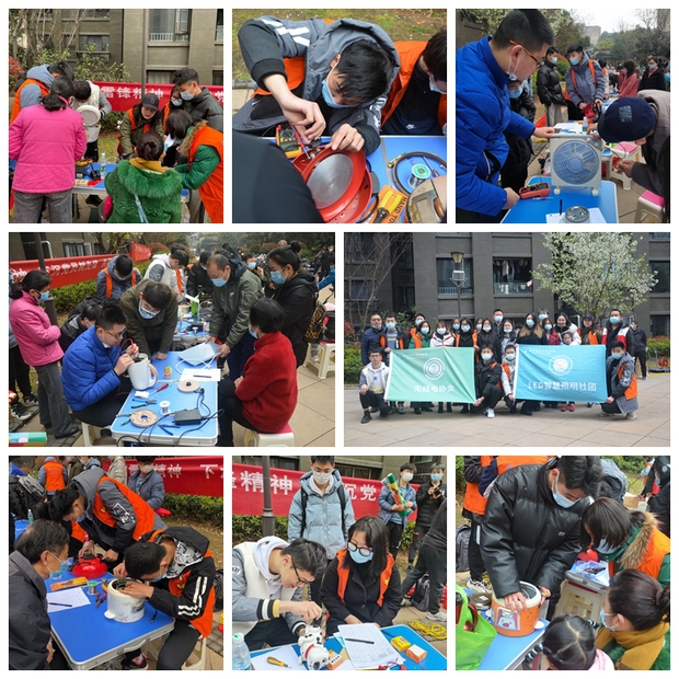 3月7日上午,电子信息工程学院无线电协会、LED智慧照明社团师生志愿者20余人走进金地格林东郡社区,为居民义务维修小家电,讲解安全用电注意事项,用技术服务社区,用知识回馈社会。