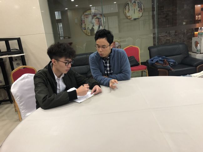 韩鹏老师在课余时间为学生进行一对一的辅导
