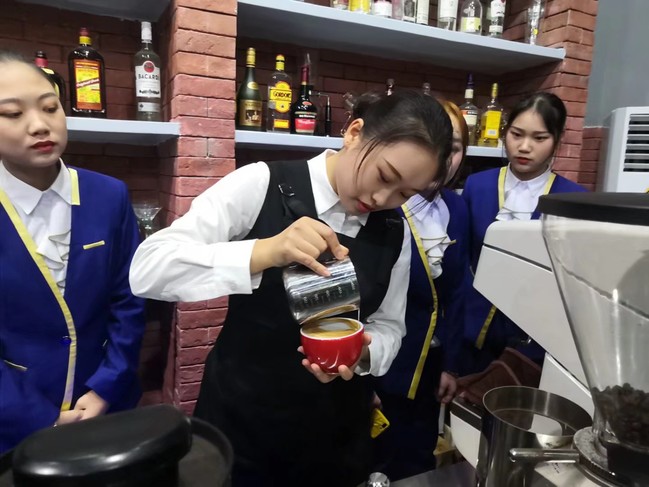 伍秋月学习制作咖啡