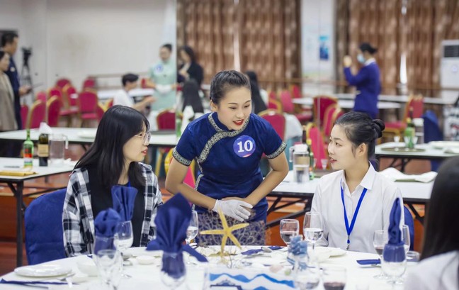一个多月的时间,伍秋月心中埋下了一颗参加技能竞赛的小小的种子。指导老师告诉她“保持热爱,继续深造,未来你将会有无限可能,也会找到自己所热爱的事业”。怀抱着这样的信念,伍秋月开始准备技能大赛,过起了没有周末的生活。她抓紧一切空余时间在实训室沉浸式学习,在餐饮服务的知识与实践中,她仿佛一个不知疲惫且永远好奇的孩子,在餐饮服务的海岸边中拾取一枚枚知识的贝壳。