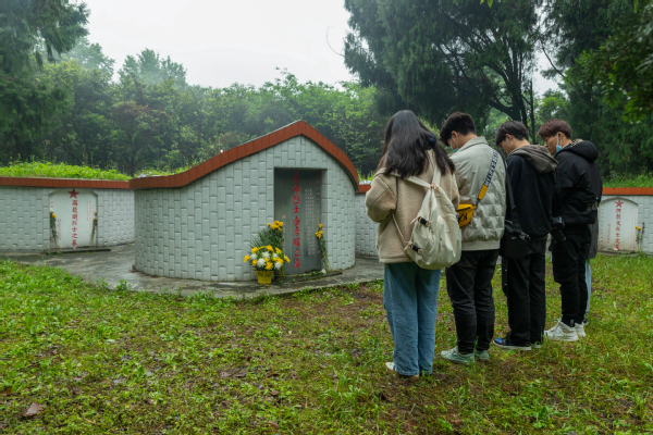 武职网讯(通讯员 宋霞 摄影 廖晓静)“今年是中国共产党成立100周年。今天,我们不远千里来这里,不只是写生,更希望大家实地感知,今天的幸福生活是无数革命先烈流血牺牲换来的。”4月12日下午,冒着蒙蒙细雨,在黔东南州榕江县烈士陵园,一群背着相机、提着稳定架的艺术设计学院师生利用采风间隙,在这里上一堂特别的思政课。