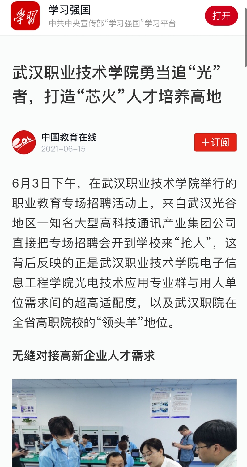 详情请见: 武汉职业技术学院勇当追“光”者,打造“芯火”人才培养高地