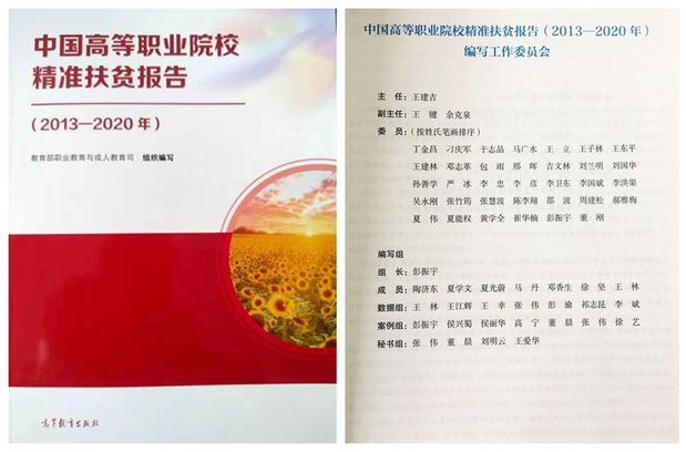 近日,由武汉职业技术学院参与组织编撰的《中国高等职业院校精准扶贫报告(2013-2020年)》由高等教育出版社正式出版发行。武汉职业技术学院党委书记、校长李洪渠列入报告编委会成员,武汉职业技术学院精准扶贫案例入选报告。