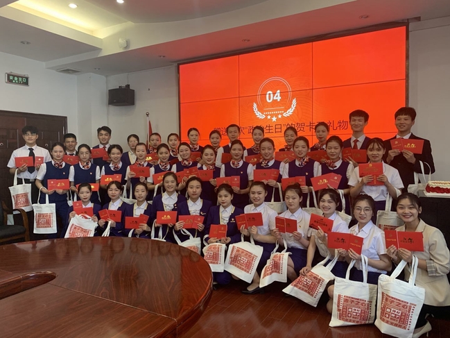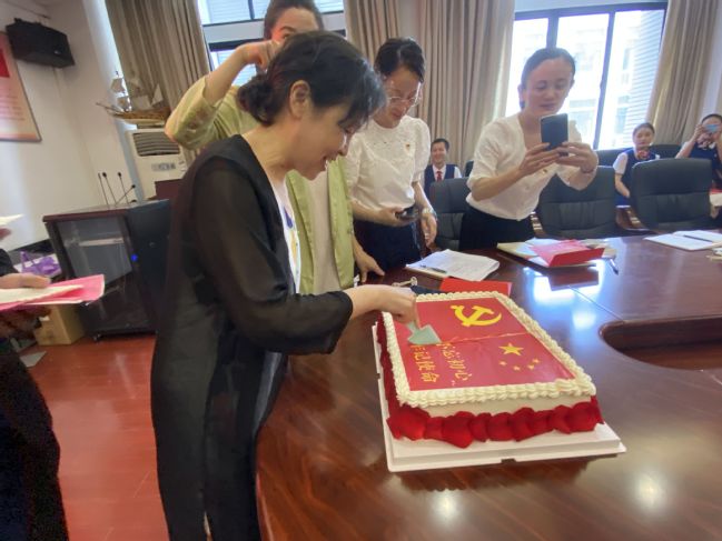 仪式上,该院分党委书记周杏珍为8名党员教师赠送“生日”礼包:一张党员政治生日贺卡、中国共产党章程和建党百年帆布袋。随后,教师党员们为37名新发展学生预备党员送上特别的“生日”祝福。贺卡上印有入党誓词,记录着每名党员的入党日期和党龄,庄严地写着分党委寄语。