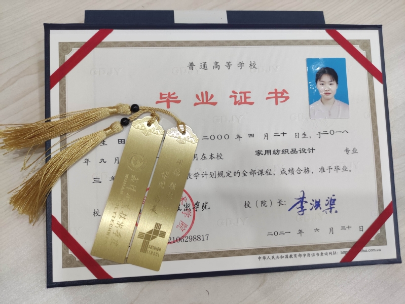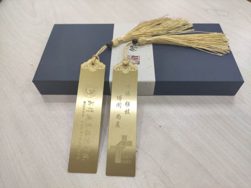 纺织与服装工程学院为每位毕业生准备了精美的定制版铜质书签,把深情和不舍装进小小的书签,给未来的日子里寄寓温柔的想念。书签正面,武职职业技术学院的标识依然是那么熟悉和亲切;书签背面,纺织与服装工程学院院训“明德、强技、博闻、尚美”历久弥新,值得铭记。