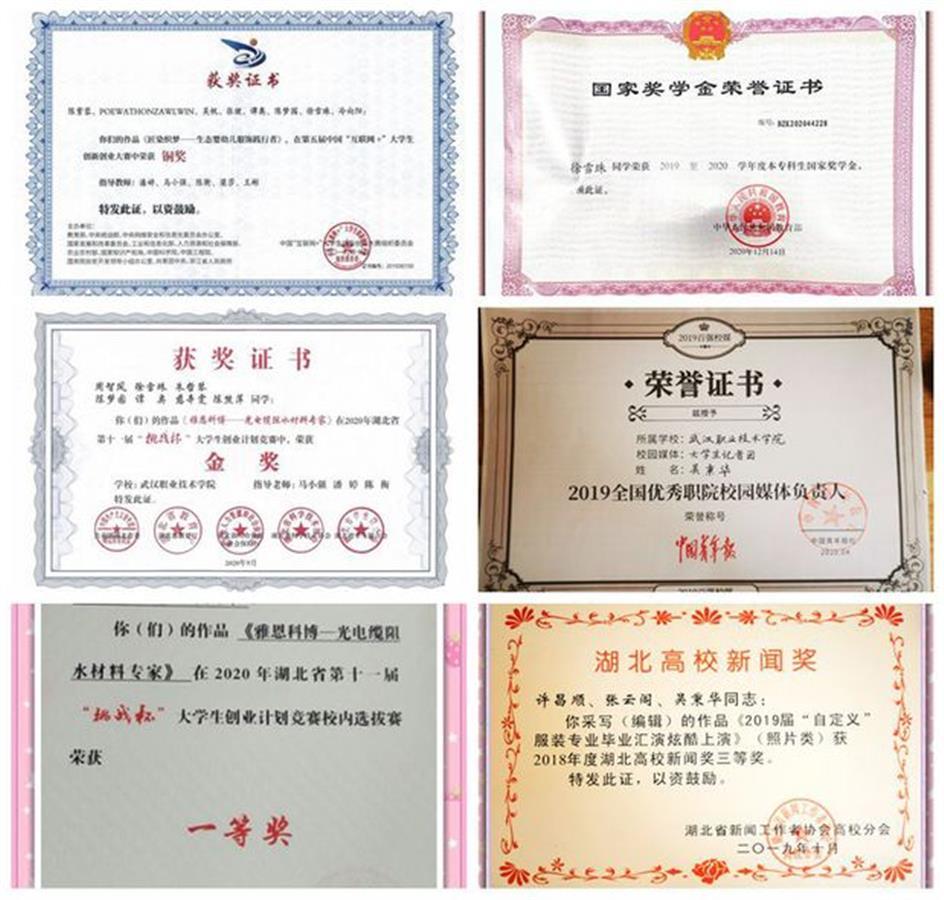 环境18301班学生获得的部分荣誉证书