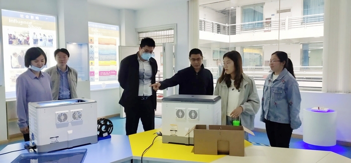 座谈会后,调研组一行参观了学校工业机器人实训中心、3D打印技术实训中心和虚拟现实技术中心、芯火基地、众创空间。