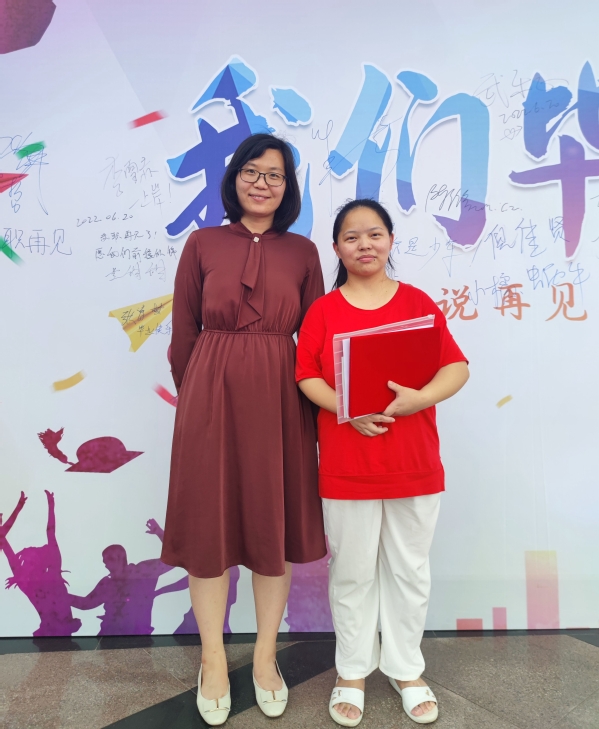 移动19303班王志荣(右)与班主任项阳阳合影留念