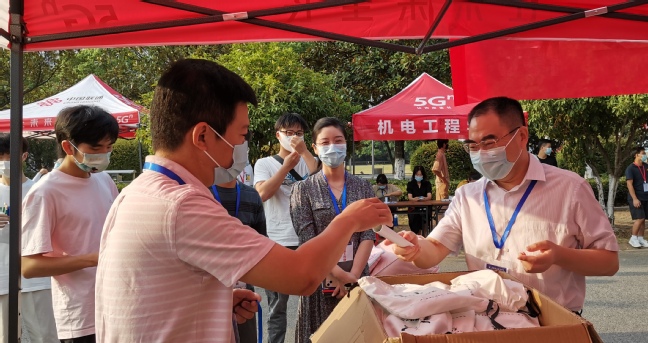 “累不累,要不要喝点水,有什么问题记得找老师帮忙啊。”每一个来报到的文化与传媒学院新生都收到了新生辅导员的慰问。
