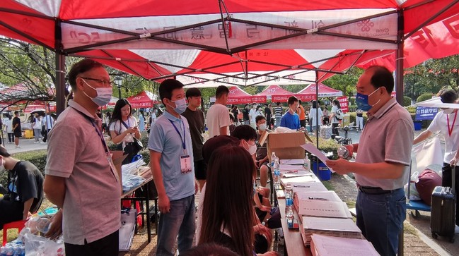 新生辅导员们关切的目光停留在一个又一个拖着行李、带着梦想来的年轻人身上。