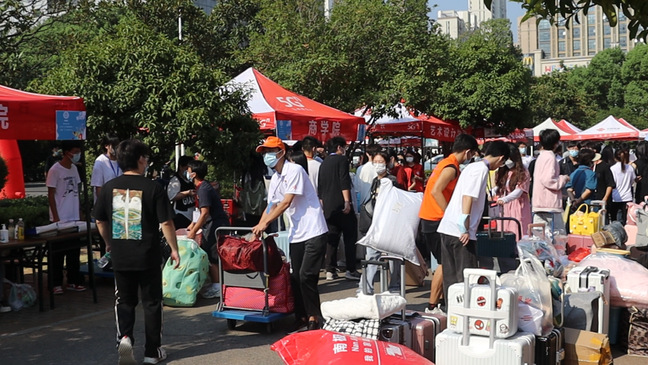 志愿者帮助新生搬运行李