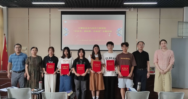 计算机技术与软件工程学院领导班子为获奖选手颁奖