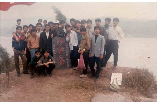 陈会军当年与班级同学在凌波湖合影