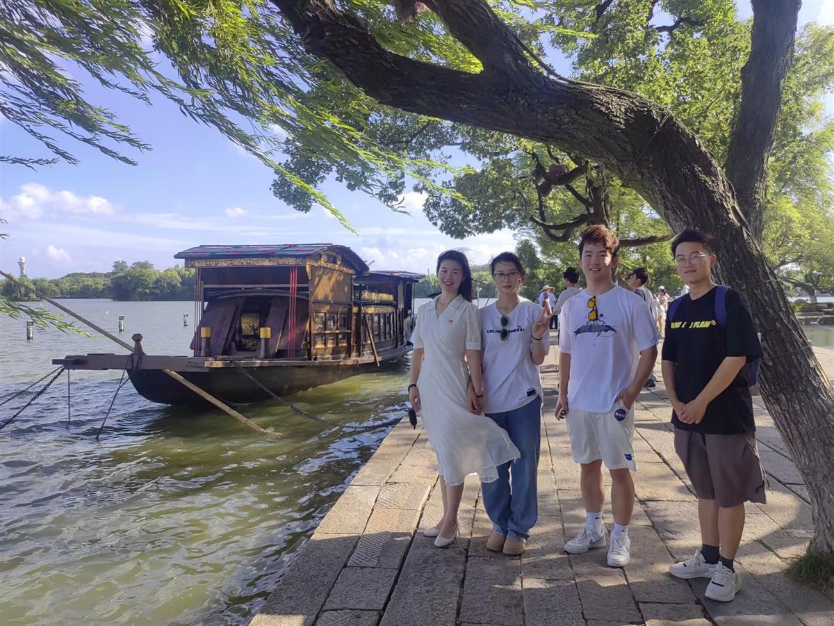作为大运河畔的红色城市,嘉兴有着浓厚的运河文化。师生们来到梅湾街历史街区,从码头登船,来一趟运河红文化探寻之旅。从梅湾街历史街区码头登船,一路行至西南湖、狮子汇渡口、文生修道院、范蠡湖公园等多个承载着嘉兴历史文化、城市记忆的地标景点。听着工作人员绘声绘色地讲解,看着眼前美丽的城市,大家纷纷感叹时代发展的沧桑巨变。师生们忍不住展开了热烈的讨论,你一言我一语,船舱里充满了年轻人努力求学、奉献青春的热情和抱负。