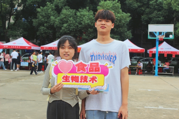 各打卡点一旁的萌新们,举着自己专业的牌子拍照打卡,记录下这与学校初遇的瞬间,将开心定格成永恒。食品23301班徐冰雁与制药23302班谢勇威来自同一所高中,如今携手踏进武职,深感缘分匪浅,二人在打卡点留下纪念。