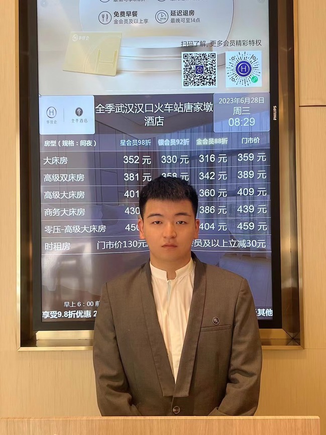 2017年,陈泽文开始在华住集团实习,业务能力不断提高,连续数月都是门店销售冠军。在毕业关头,旅游学院酒店专业学子们都有了不一样的人生选择,或继续深造学习,或选择考编,或转行从事其它行业......而陈泽文坚定了在华住集团发展的决心。