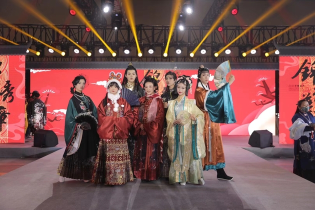 褚思佳(右二)参加2020年锦绣华章华服盛典