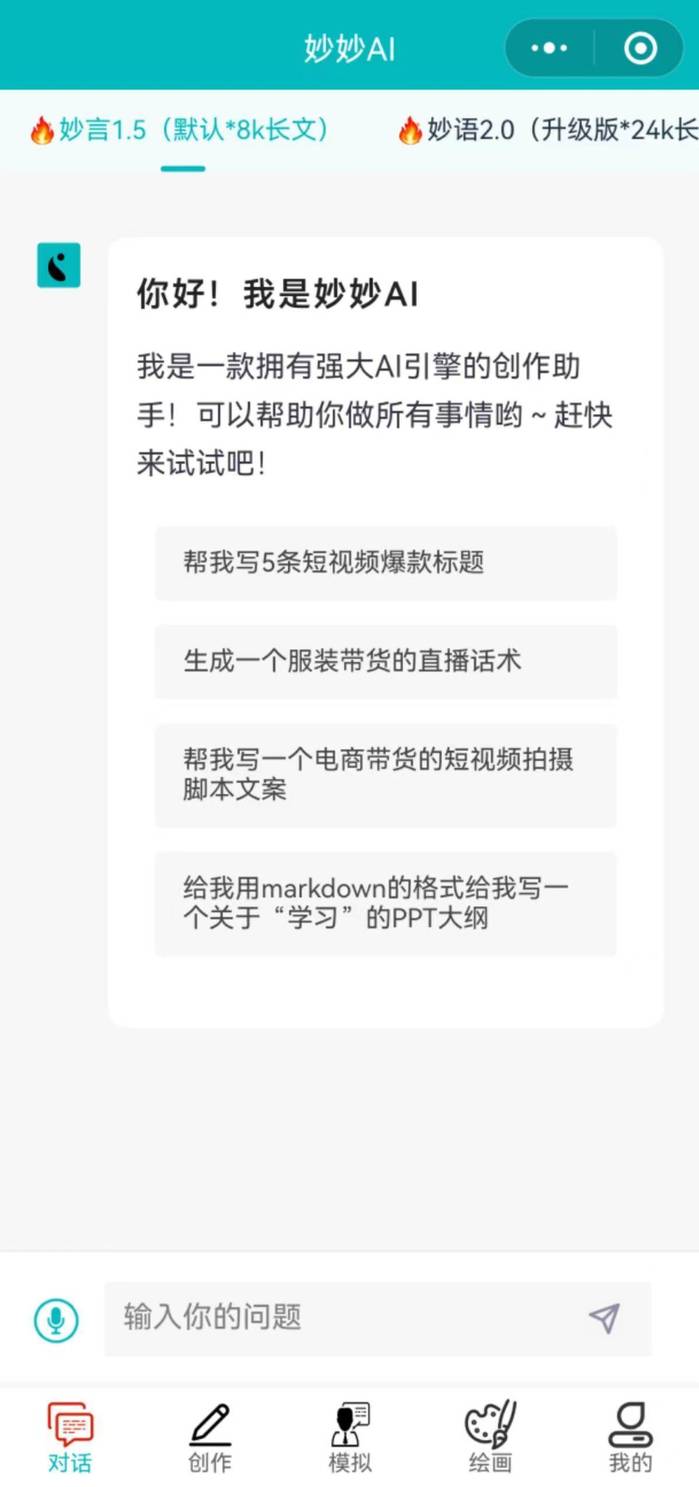 “妙妙AI”小程序版