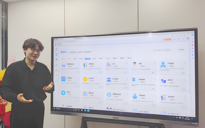 公司创始人之一、2001年出生的李桂灵为客户演示“妙妙AI”平台