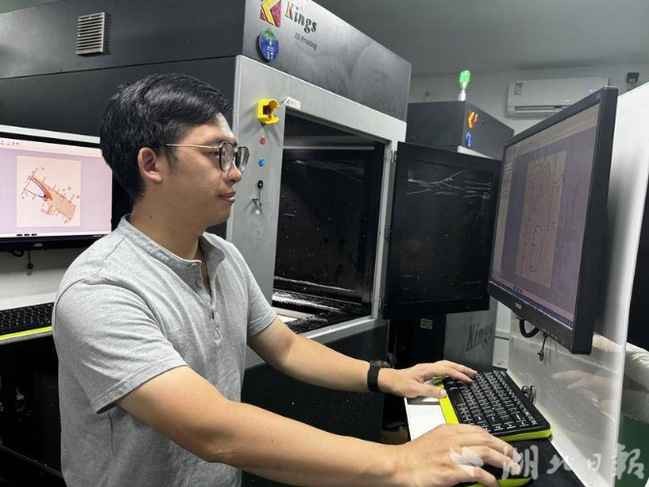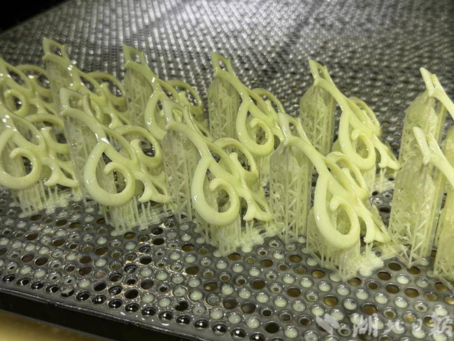 武汉市领航三维科技有限公司是王渤的合作企业。8月10日,记者在公司厂区见到一排排正在工作的工业级光固化3D打印机。