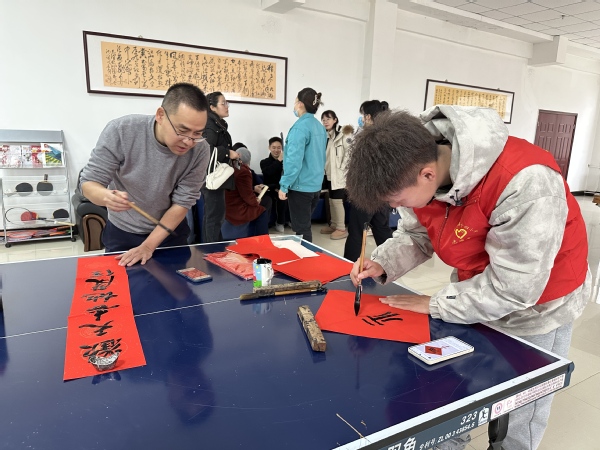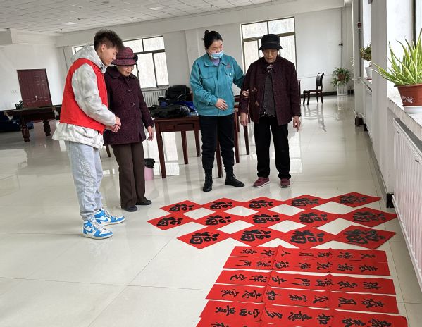 节目谢幕,张星晨和志愿者们又来到桌前,铺开红纸,挥毫书写春联。他笔锋刚劲有力,倾注着对老人们的深深祝福。不一会儿功夫,一副副寓意吉祥的春联在他笔下诞生,“天增岁月人增寿,春满乾坤福满门”“春临大地百花艳,节至人间万象新”;一个个饱含真情的 “福” 字熠熠生辉,如同冬日暖阳,让整个院落焕发出新年的喜庆与生机。