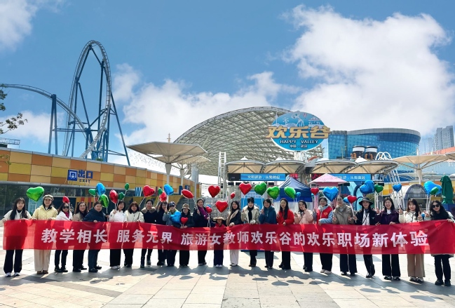 下午 13:00,午后的欢乐谷正门前,25名身着轻便春装的旅游学院女教师格外引人注目。不同于普通游客的轻松惬意,她们手持工作手册、肩挎扩音器,在打卡拍照时还不忘观察游客动线设计。