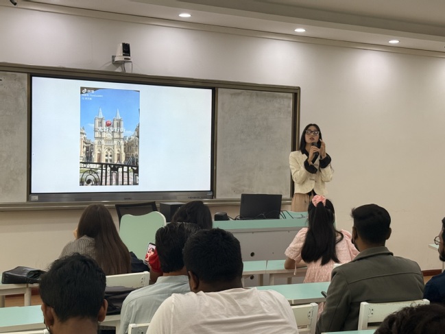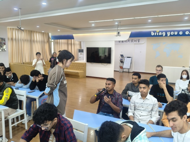 谈及中国的现代化城市生活,孟加拉国的艾哈迈德感触很深:“在中国,我不仅从友好的人们那里获得了许多帮助,更从便捷的导航和支付系统中感受到劳动的伟大,每当听到支付宝‘叮咚’一响,就像收到被接纳的信号,很幸福。”他的真诚分享引发留学生们强烈共鸣,现场报以热烈的掌声。