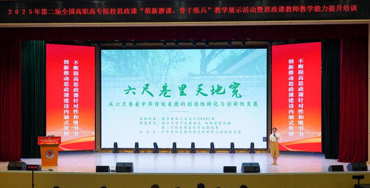 此次活动由全国高职高专院校思想政治理论课建设联盟倾力主办,赛事流程规范严谨、秩序井然。活动历经省内初选的激烈比拼、线上复选的严格筛选,最终从各省精心推荐的“萌新磨课”98份优秀作品中优中选优,遴选出10名选手进入全国现场展示环节。值得一提的是,在4月举办的湖北省选拔赛里,石艳丽从全省33件“萌新磨课”作品中脱颖而出,凭借特等奖第一名的傲人成绩入围全国线上复选,并作为湖北省两名优秀选手之一,顺利挺进全国现场展示阶段。