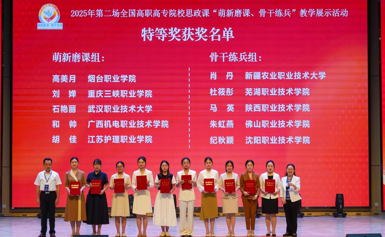 新闻网讯(通讯员 陈媛媛)5月17日,2025年第二场全国高职高专院校思想政治理论课“萌新磨课·骨干练兵”教学展示活动于重庆城市管理职业学院圆满收官。武汉职业技术大学青年教师石艳丽在“萌新磨课”组中脱颖而出,赢得特等奖殊荣,一举刷新我校在该项赛事中的历史最佳成绩。
