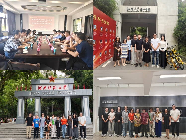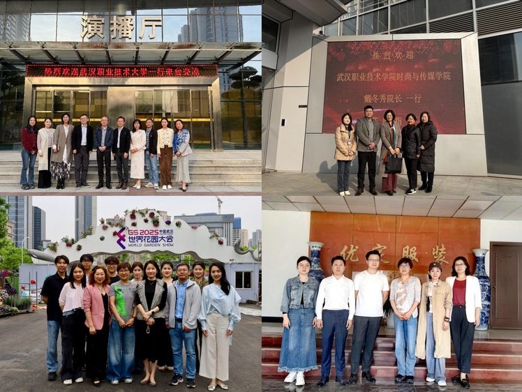 在武汉纺织大学服装学院,重点学习其“宽基础、重创新、国际化”的“有氧教育”理念与“结构带两头、科研助发展”的人才培养体系,其“稳住师资基本盘、狠抓课程改革、融合新技术”的AI时代应对策略,为时尚与传媒学院服装专业“设计成衣化、国际化”转型提供范本;在武汉纺织大学传媒学院,双方就人文社科专业在技术浪潮中的特色塑造展开研讨,形成“技术工具化+内容价值化”共识;在湖南师范大学工程与设计学院,了解其专业建设、课程设置、招生与就业以及实训基地建设的管理机制,为服装专业实习实训基地建设、校企协同育人提供新思路。