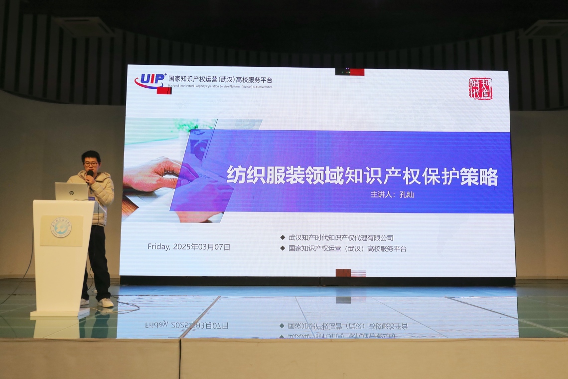 3月,武汉知产时代科技有限公司孔灿、专利部主任姜沅宏为时尚与传媒学院教师作《以知识产权推进教师科研能力建设》专题讲座,通过专利申报案例解析,为教师团队建立“科研成果产权化” 思维框架,提升知识产权培育能力支招。