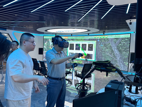 在润尼尔公司负责人陪同下,调研团队深入体验了虚拟仿真一体机教学系统、VR沉浸式绘画创作、裸眼3D一体机等前沿的数字媒体教学应用场景和教学模式创新,深刻感受到数字技术与艺术教育的深度融合所带来的变革与启发。