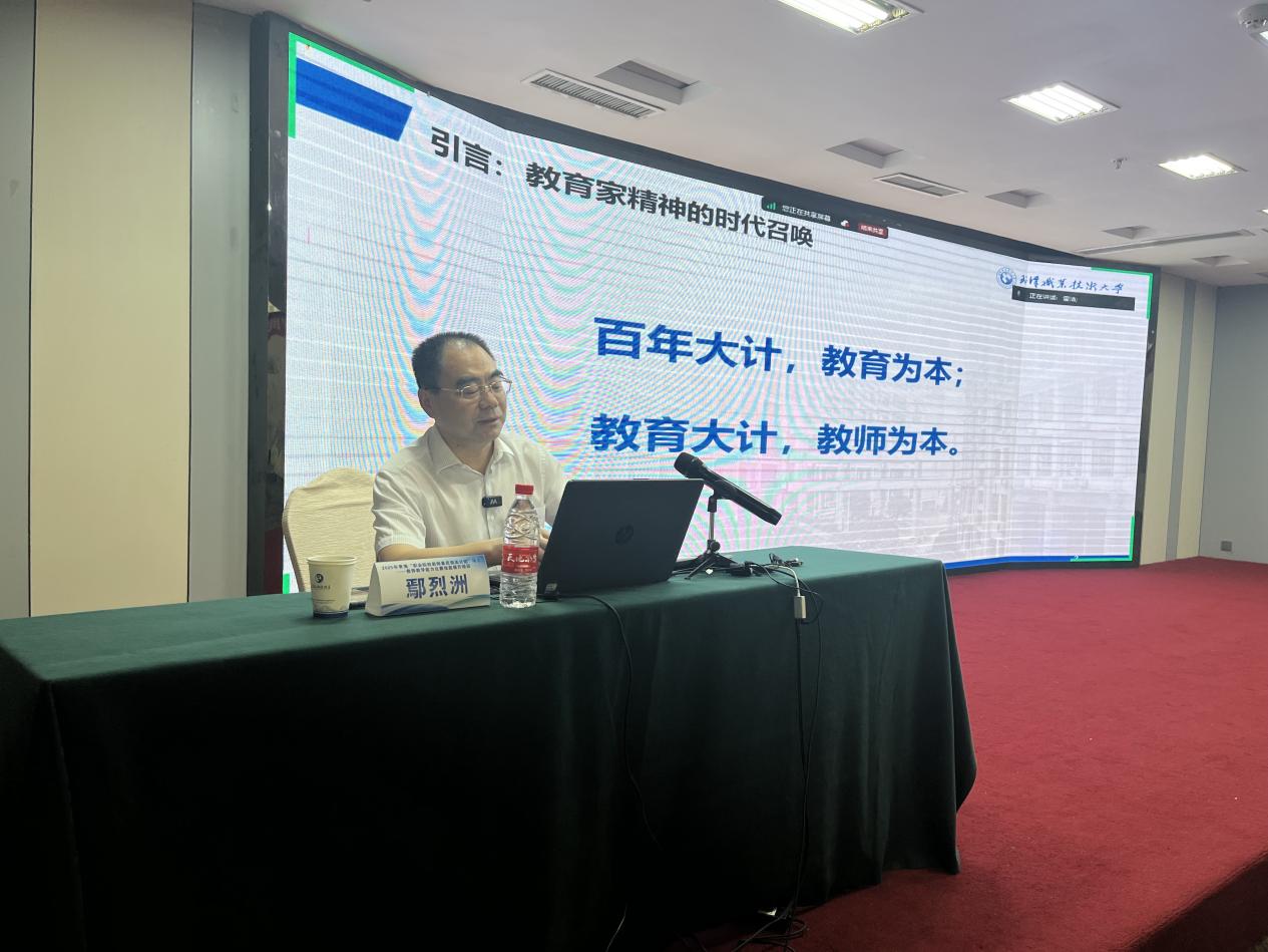 武汉职业技术大学党委书记鄢烈洲以《弘扬教育家精神,勇担强国建设使命》为培训班开讲。他深入解读教育家精神的时代内涵与核心要义,结合生动职教案例,阐述在新时代职教改革中践行教育家精神的路径,为学员注入了精神动力与使命担当。