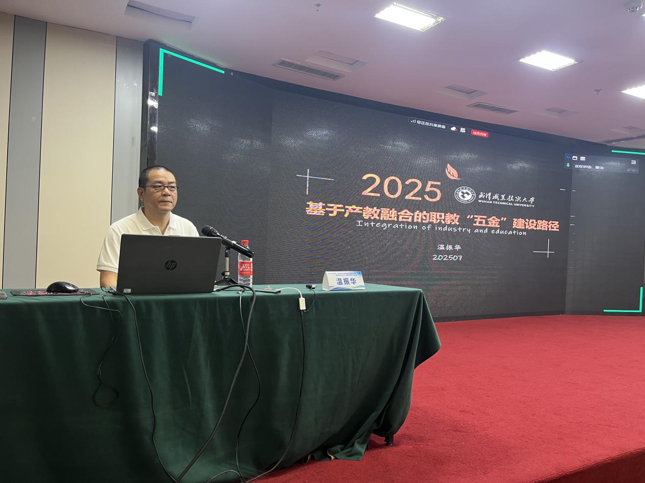 国家级教学成果二等奖主持人、武汉职业技术大学教务处处长温振华系统阐述“基于产教融合的职业教育‘五金’(金专、金课、金师、金地、金教材)建设路径”,分析职业院校面临的机遇挑战,提出产教融合导向下的“五金”协同发展策略。