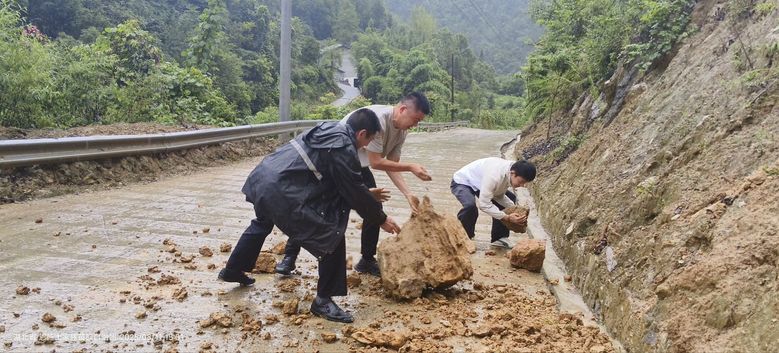 巡查途中,一名村民紧急反映,村内长沙坝路段突发滑坡,泥土、石块阻断道路,导致车辆与行人通行受阻。工作队队员闻讯后立即赶赴现场,组织人员清理路障,并安排专人在路段两侧设置警示标识,仔细排查周边山体稳定性,严防二次滑坡事故发生。此外,工作队还借助村广播循环播报路况信息与安全提示。
