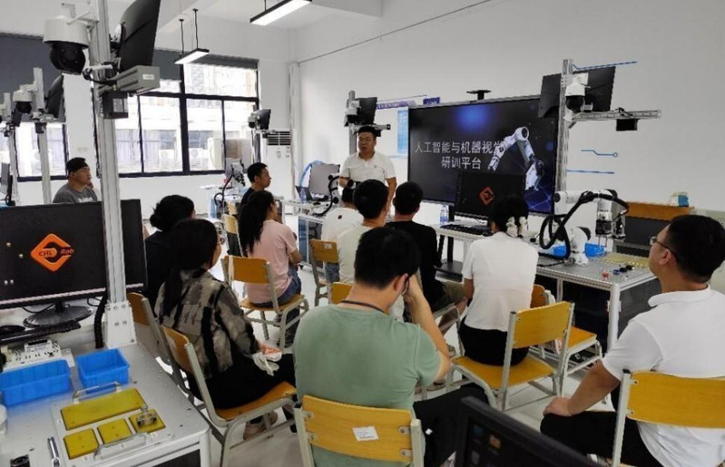 强化实践是本次培训的核心。学员们深入工业机器人、人工智能与机器视觉、五轴数控加工、工业网络等理实一体化实训课堂,在“做中学、学中做”,切实提升了对智能制造核心技术的应用能力。
