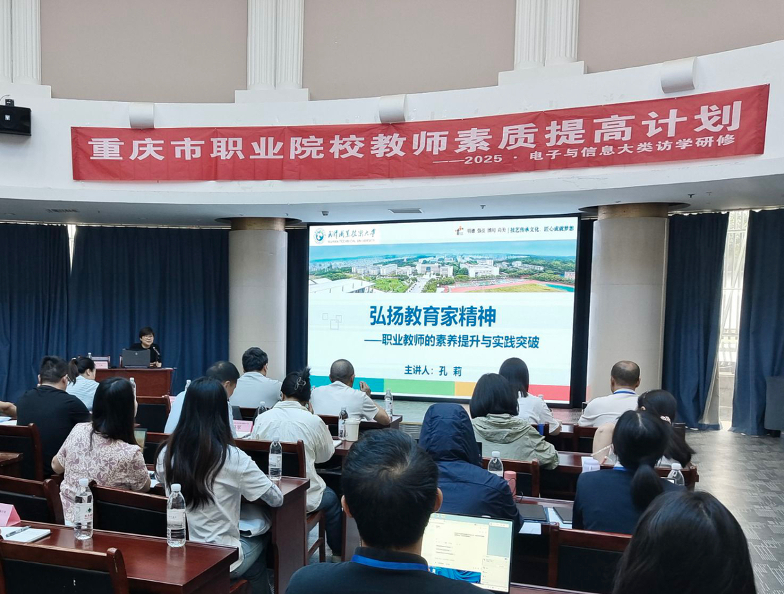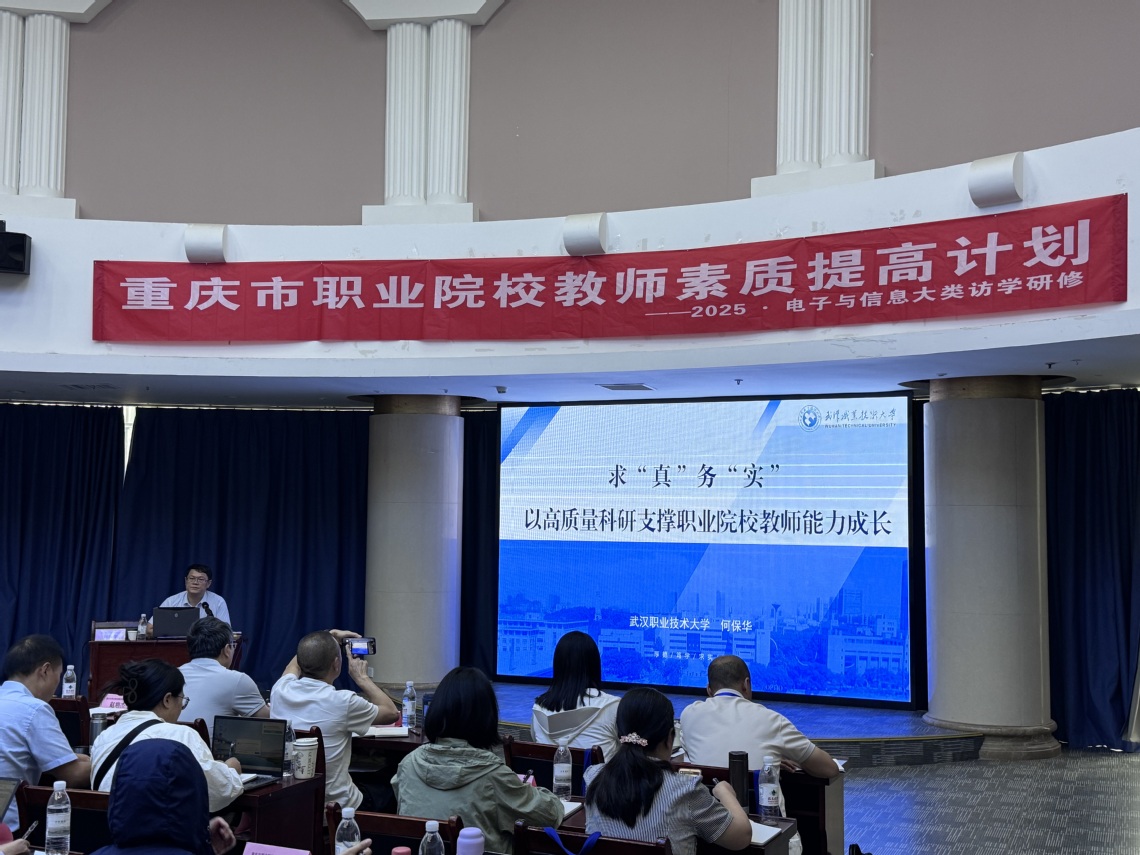 新闻网讯(通讯员 臧玮琪)8月30日,2025年重庆市职业院校教师素质提高计划访学研修电子与信息大类培训班圆满收官。来自重庆市各职业院校的21位骨干教师齐聚江城,完成为期20天的研修培训顺利结业。
