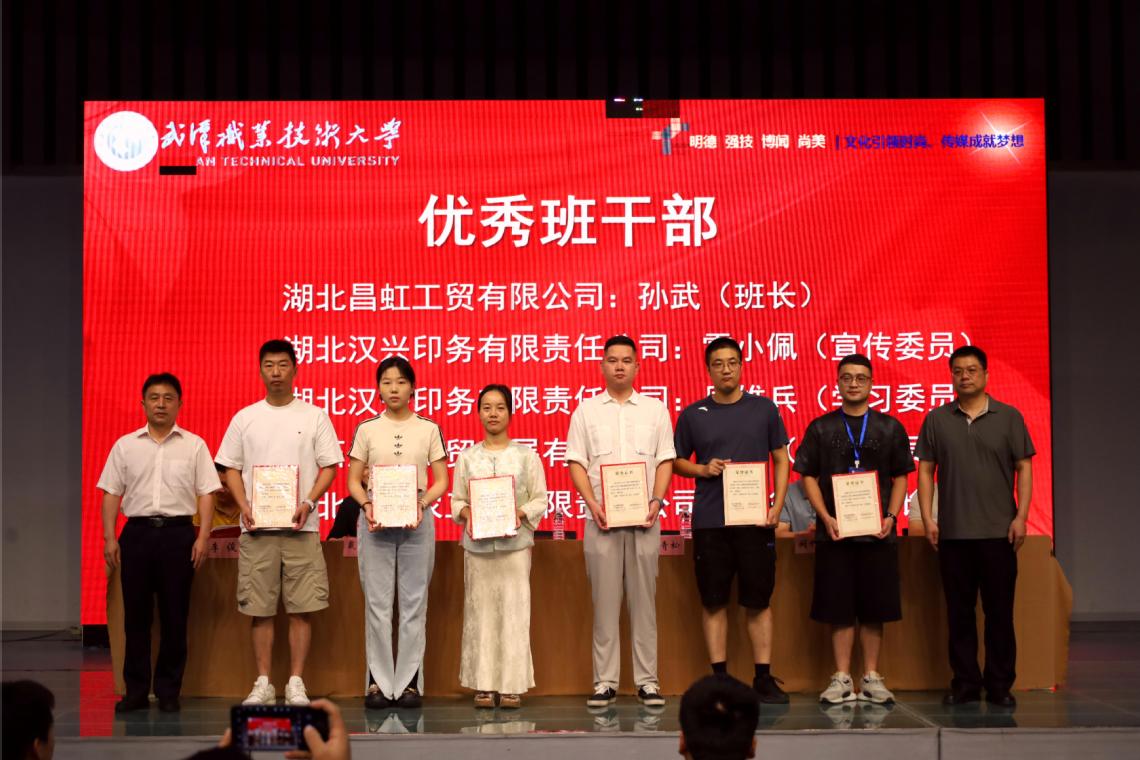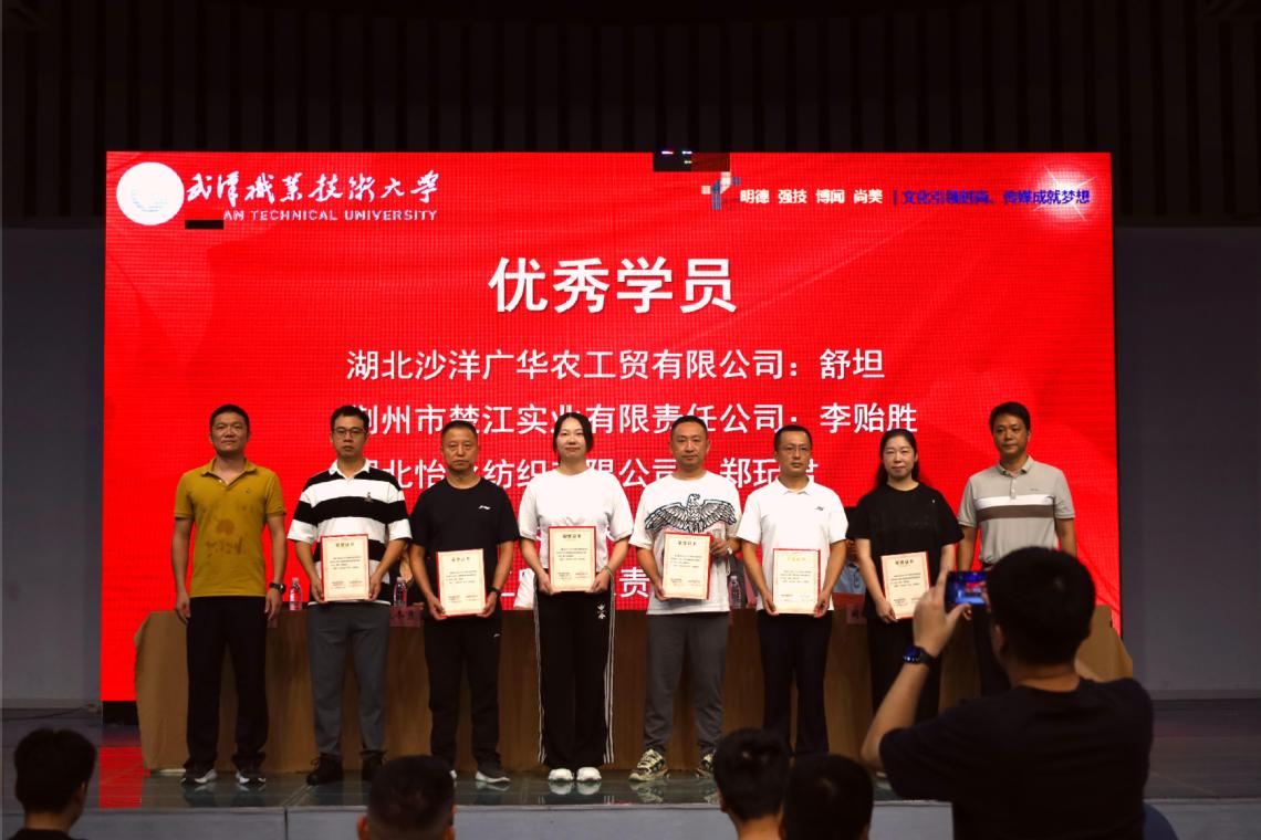 楚垣集团生产经营部部长舒青松、副部长阙利龙、总经办副主任王凯、安全办副主任李俊,集团总部及旗下26家子公司的82名参训民警职工,与武汉职业技术大学党委副书记胡象斌、时尚与传媒学院院长戴冬秀、培训项目导师及工作人员齐聚一堂,共同观摩成果展示、交流学习心得,为本次专项人才培训计划画上圆满句号。结业典礼由时尚与传媒学院党委副书记陈玲玲主持。