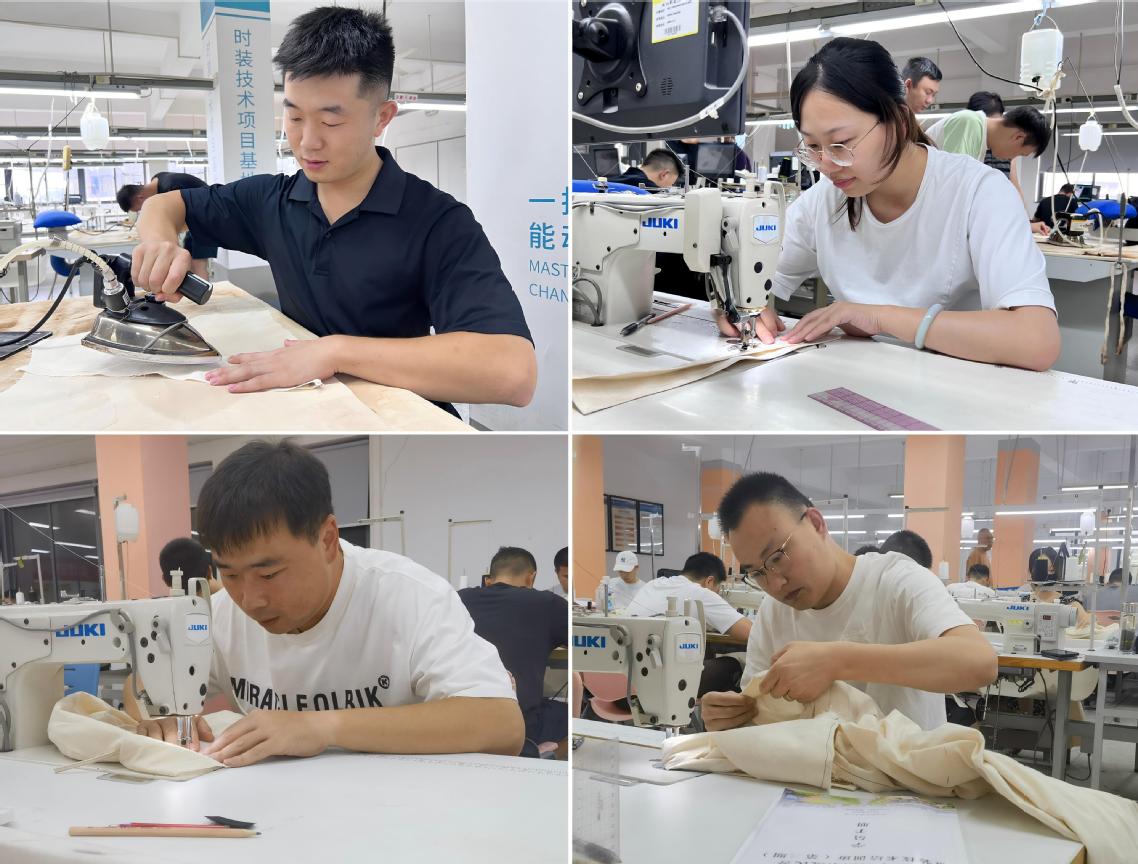 在近一个月的沉浸式学习过程中,学员们完成了从“小白”到“能手”的蜕变:开班时连缝纫机基础操作都需要反复练习的“技术新手”,结业时已是既能精准把控衬衣、西裤缝制细节,又能结合生产实际思考工序优化、排产管理的“准管理型技术能手”。