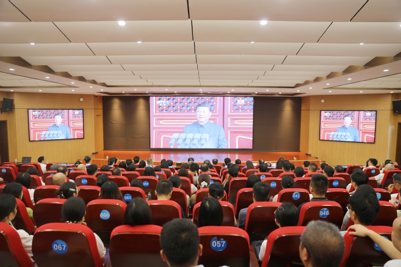 新闻网讯(党委宣传部组稿 摄影 王诚)秋日京华,十里长街;三军列阵,英姿飒爽;银鹰呼啸,剑指苍穹;铁甲洪流,撼地生风;旌旗猎猎,气贯长虹。9月3日上午,纪念中国人民抗日战争暨世界反法西斯战争胜利80周年大会在北京天安门广场隆重举行。中共中央总书记、国家主席、中央军委主席习近平发表重要讲话并检阅部队。学校组织广大师生通过电视、网络平台收看大会实况直播,全体校领导、两委委员以及机关党委全体党员在凌峰楼道德讲堂与全校师生一道,共同见证庄严神圣、激动人心的时刻。
