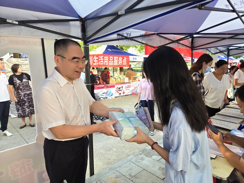 8日上午,学校党委书记鄢烈洲亲手递上印着校徽的专业书籍,并寄语新生“这是开启你们专业探索的‘启蒙之钥’,愿你们在书页间探寻学科真谛,找到心之所向,在武职扎根成长、积蓄力量”;学工处副处长夏挺带来装满笔记本、中性笔的“文具大礼包”,“希望从入校第一天起,你们能以笔为媒、以本为鉴,养成踏实记录、认真钻研的治学态度”;旅游学院院长蒋永业送上轻便的羽毛球拍,“大学时光既要在知识殿堂‘读万卷书’,也要在运动场上‘强健体魄’,愿你们在挥拍间释放活力,在运动中收获健康与友谊。”
