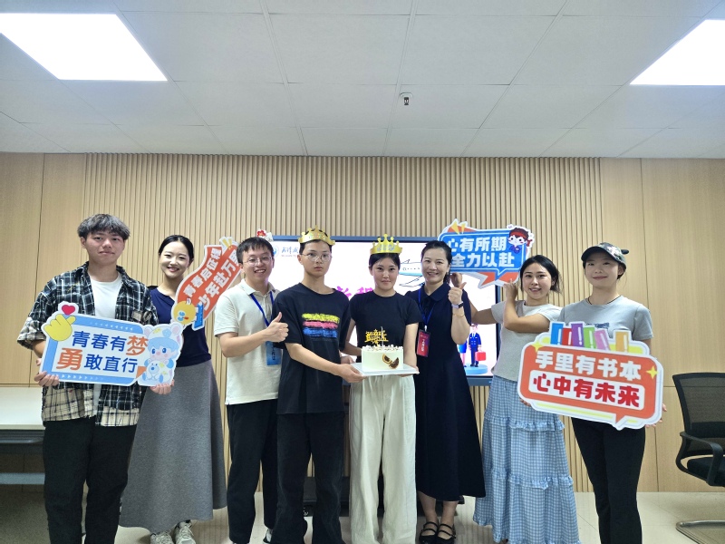 当夜幕降临,厚德一站式学生社区的温馨氛围,将全天的迎新暖意推向高潮。学院在梳理新生信息时发现,2025级新生中有两位学生恰逢9月8日生日,便悄悄筹备了一场“惊喜生日会”:定制蛋糕上“旅院欢迎你,生日快乐”的字样格外醒目,五彩气球缠绕着活动区的桌椅,志愿者们还提前练唱了“生日歌”。