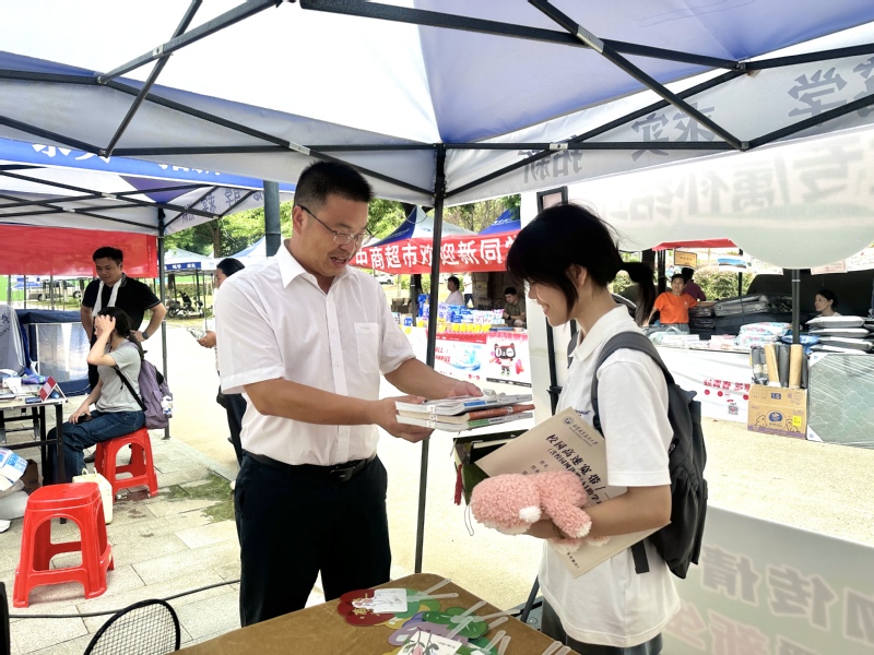 迎新现场的旅游学院新生专属补给站,始终涌动着温情,学院将“德智体美劳”全面发展的要求,化作三份“成长礼”。