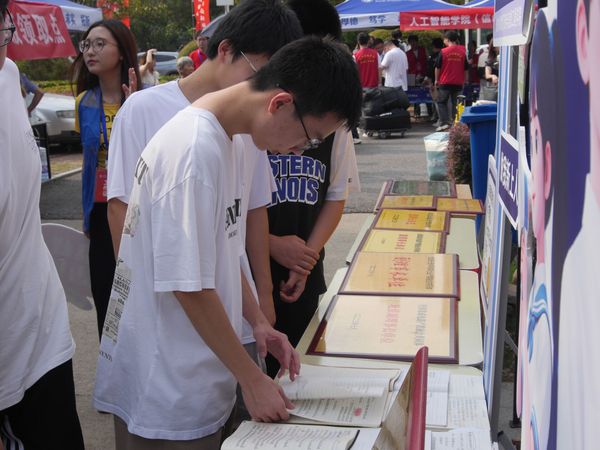 展台前,两位新生久久驻足。光信25402班孙安琪在世界技能大赛金牌前轻声自语:“原来顶尖高手离我并不遥远,明年赛场必有我的名字。”而集电25402班的郑亚军在翻阅学长的笔记时感叹:“这些字迹和电路图就像打印出来一样工整!学长们对专业的敬畏,比奖牌更震撼我。”榜样的力量在此刻,悄然点燃了新生的心。