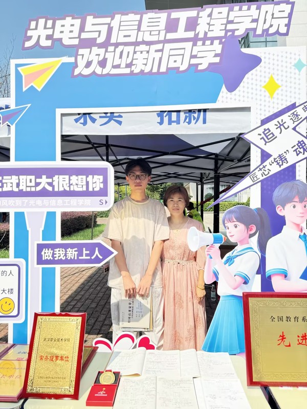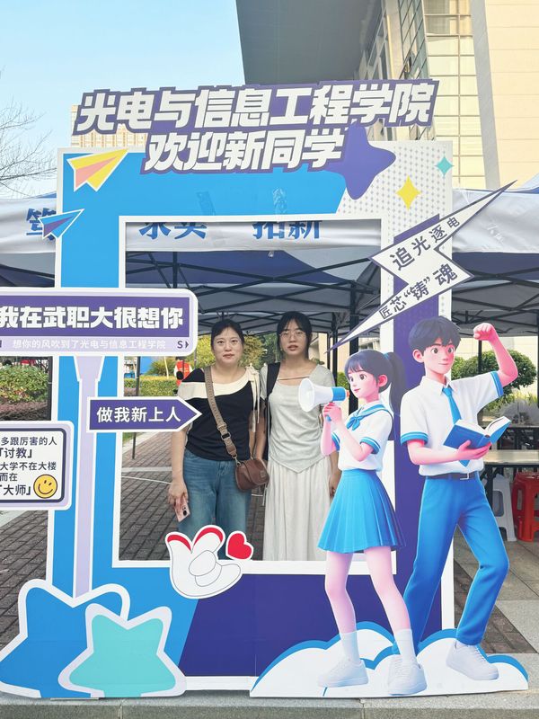 “咔嚓!”光信25402班的林子骁与母亲在打卡点拍下了一张全家福。“这张照片将成为我大学的第一份记忆,从此刻开始,记录我的成长与蜕变。”林子骁说。