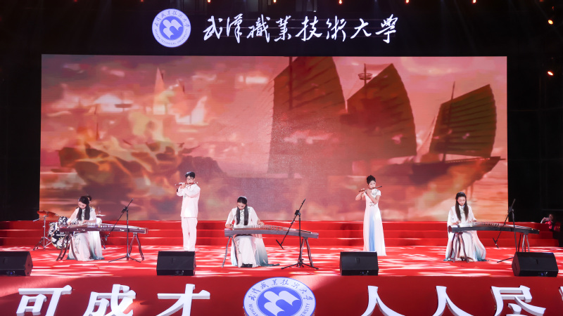 第三篇章“乘风破浪”中,旅游与航空服务学院选送的现代舞《砥砺前行》,以“攀登者”意象诠释武职学子攻坚克难、永不言弃的精神;凌息声乐队歌曲串烧《追光》,以多元曲风展现青春成长与奔赴山海的豪情;时尚与传媒学院选送的情景剧《青春武职大》,创新融合非遗展演、技能实践和歌舞表演,展示学校文化育人成果。