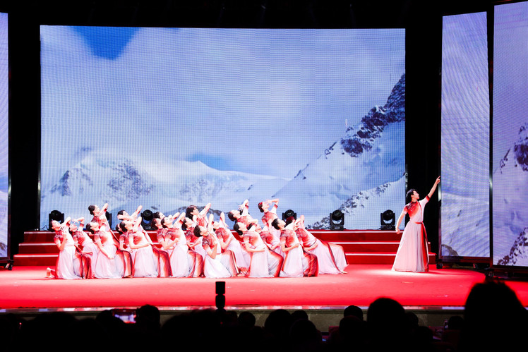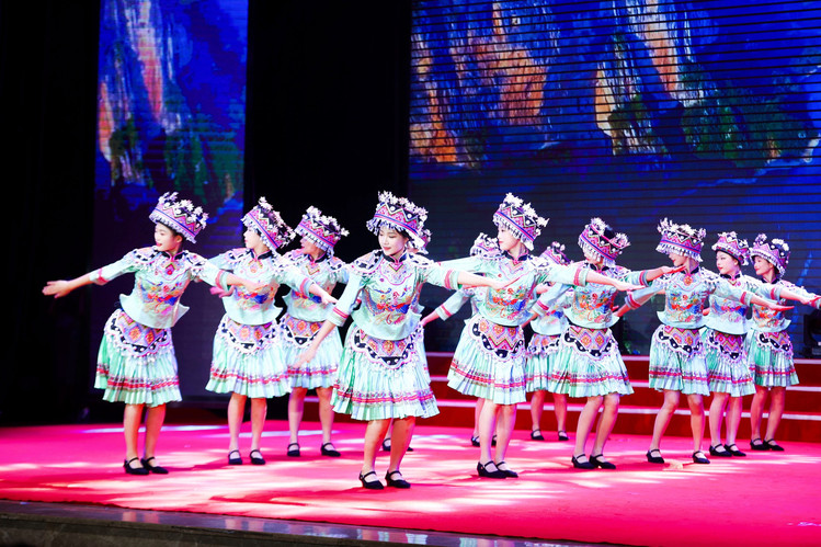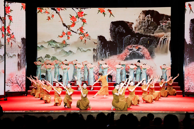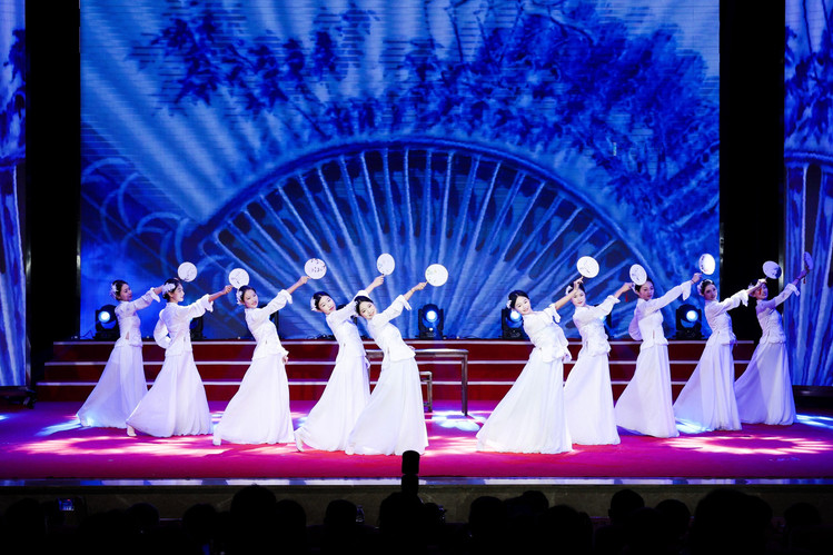 第二篇章“同心奋进·逐光当下”以民族舞《摆手迎福》、群舞《浔瓷》和《旗韵风华》串联起文化自信与青春力量。古典与现代交融,职业礼仪与美育修养并进,展现了校企协同育人的多元内涵。