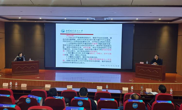 会上,学校纪委、监察专员办公室监督检查室主任龚丽红以《招标管理中的风险隐患及预防举措》为题,开展专题廉洁微讲座。她紧扣“两新两重”政策背景与学校项目实际,对招标六个阶段的风险点进行了详细讲解,同时针对性提出民主决策、信息公开、监督检查等可落地的预防举措,为参会人员清晰梳理了风险防控的重点方向。