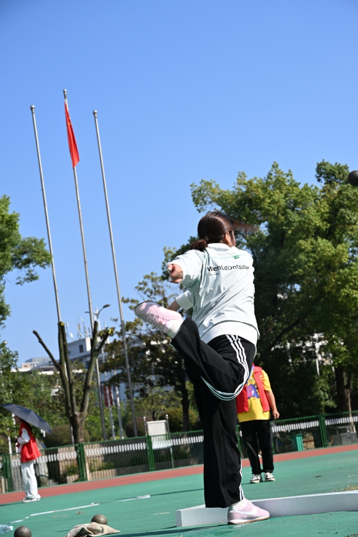 有意思的是,一名女生在调整姿势时,不自觉把铅球当作“画笔”,抬手在空中比划出一道抛物线 —— 这可爱的小细节,逗得场边裁判和观众忍俊不禁,“原来艺术生投铅球,是在给天空画专属的弧线呢!”当铅球裹着劲儿飞向远处,场边的欢呼声混着少年们的笑声,在整个运动场上荡开。