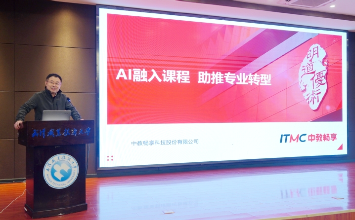 中教畅享科技股份有限公司董事长、中国商业联合会副会长黄学全以“AI融入课程,助力专业转型”为主题,结合典型商贸场景,展示人工智能技术应用成效,系统介绍了电子商务及相关专业的人机协同能力培养路径与“AI+教育”平台在教学全流程中的实践应用。